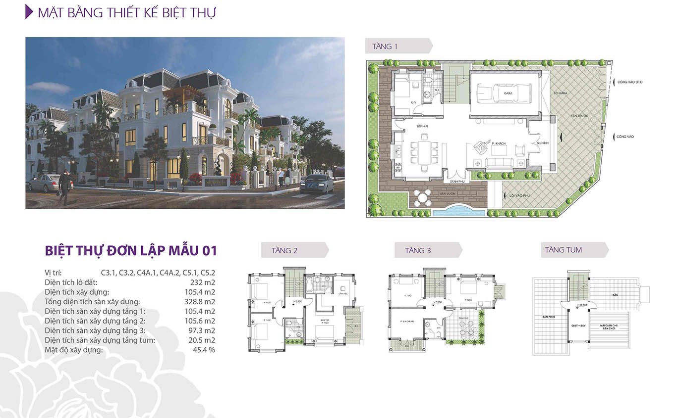 Ở giai đoạn 3 dự án với phần lớn là diện tích 200m2 và 400m2 thì chúng ta có được 6 mẫu thiết kế điển hình như dưới đây